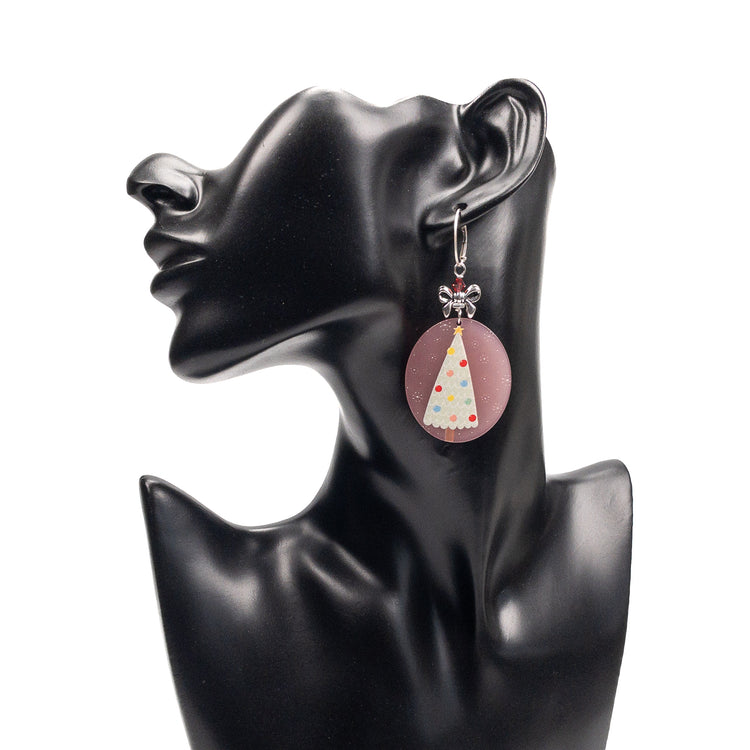 Resin Pink Oval with Christmas Tree Charm - 4 pcs.