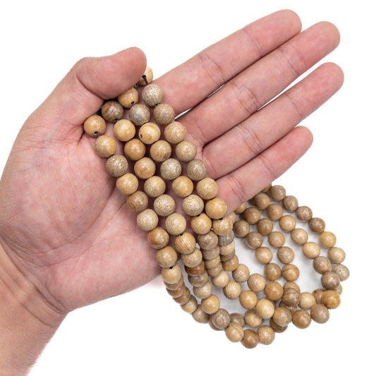Sandalwood 8mm Round Bead - 108-Bead Full Mala 30" Strand (GEM1409)
