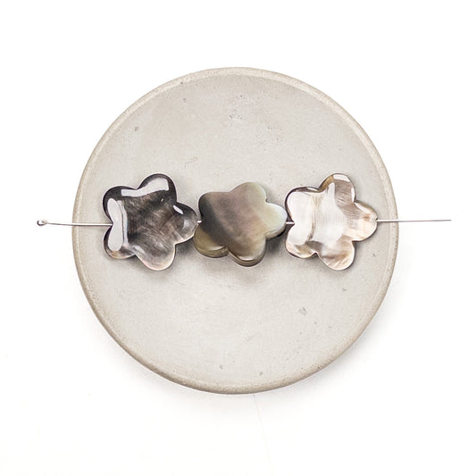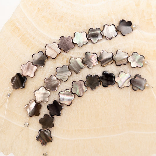 Tahitian Black Lip Oyster Shell 10mm Flat 5-Petal Flower Bead - 3.5" MINI Strand