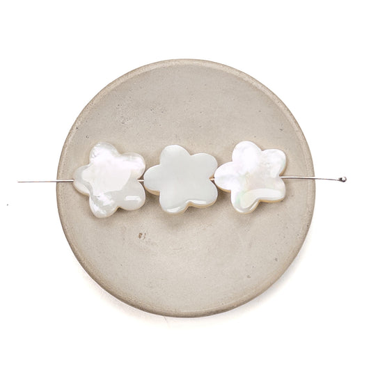 White Mother of Pearl 18mm Flat 5-Petal Flower Bead - 1 pc. (P2668)