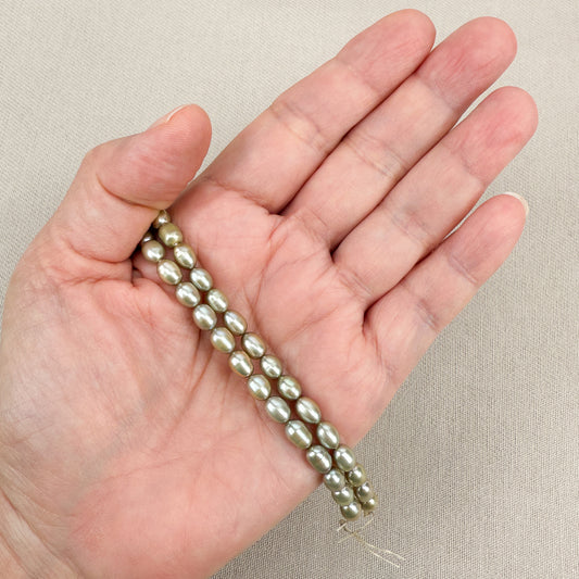 Light Celadon 7x5mm Rice Freshwater Pearl Bead - 8" Strand (GEM1761)