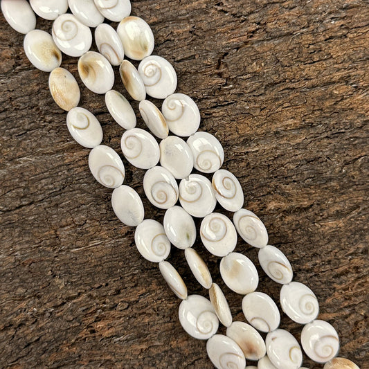 Shiva Eye Shell 10x14mm Oval Coin Bead - 7.75" Strand