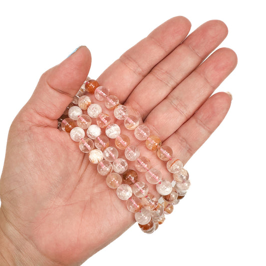 Snowflake Phantom Quartz 8mm Smooth Round Stretchy Cord Bracelet (GEM2118)