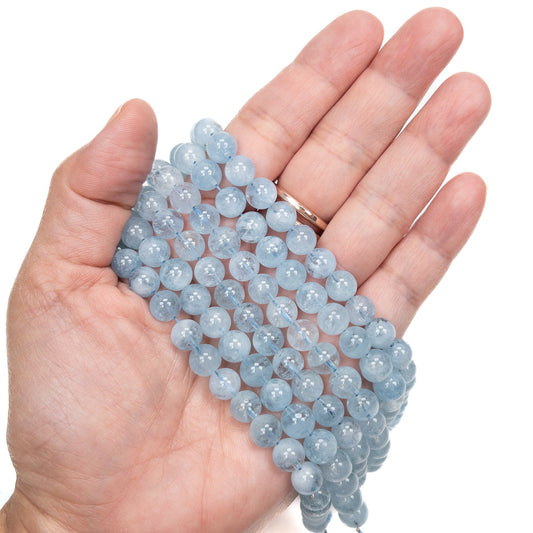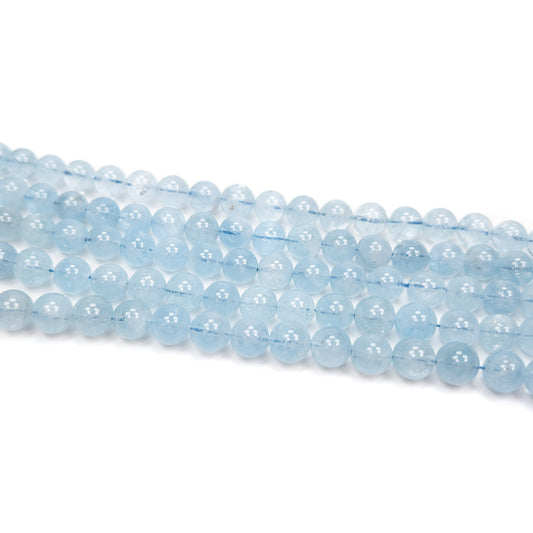 Aquamarine 8mm Smooth Round Bead - 8" Strand (GEM1109)