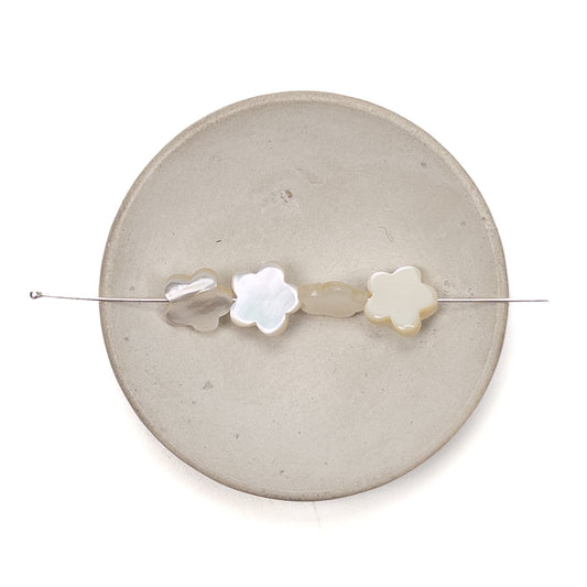 White Mother of Pearl 10mm Flat 5-Petal Flower Bead (1 pc/P2672)