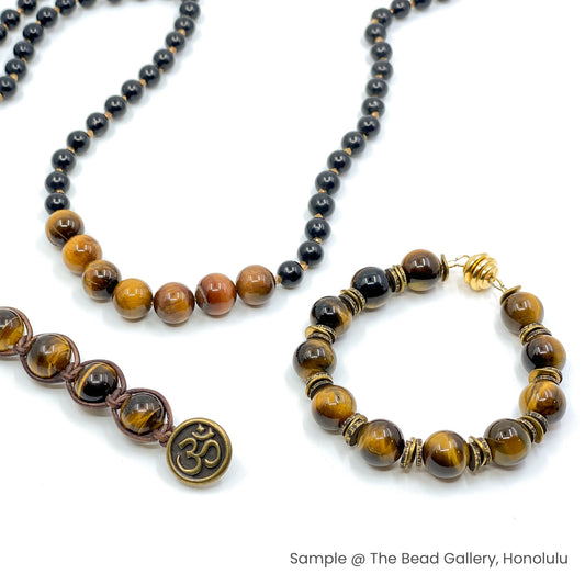 Tiger Eye 8mm Round Gold Dragon Bead - 7.5" Strand