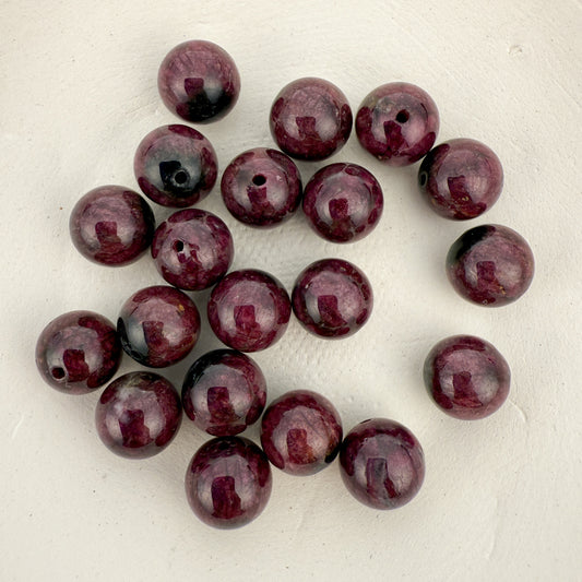 Blood Red Tourmaline 10mm Smooth Round Bead - 6.5" Bracelet OR 1 piece (GEM2412)