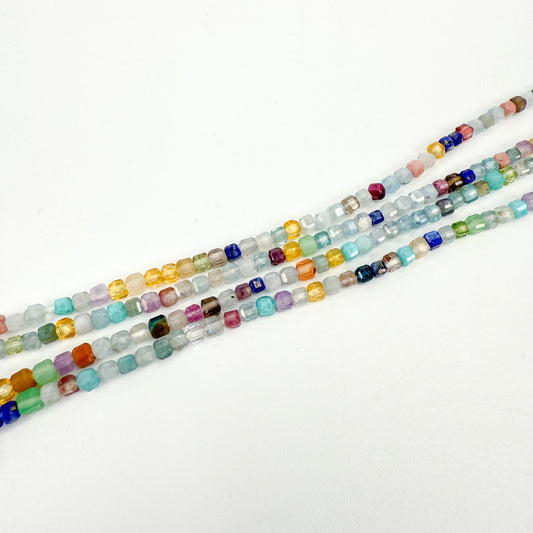 Mixed Gemstone 2.25mm Faceted Cube Bead - 6.25" Strand (GEM2442)