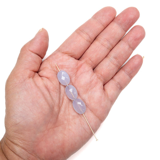 Blue Chalcedony 10mm x 14mm Faceted Flat Oval Long-Drill Bead - 1 pc.