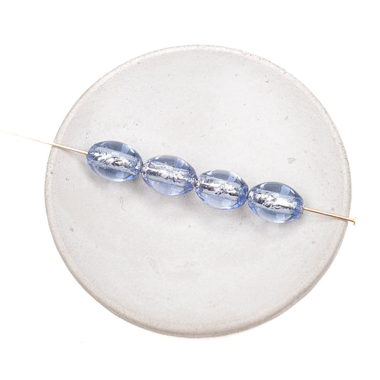 Tanzanite with Silver Foil 6x8mm Oval Glass Bead - 1 pc.