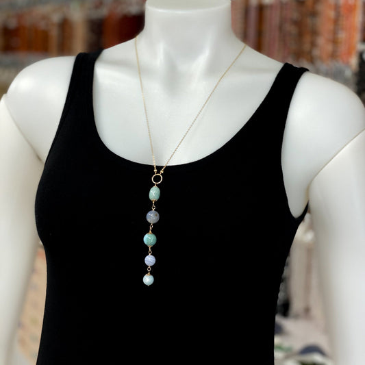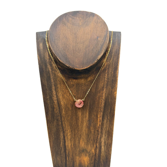 Pink Tourmaline Briolette Bead Necklace on Fine Gold Chain (J371)