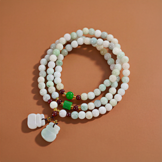Jade 6mm Round Triple Wrap Stretchy Cord Necklace with Prosperity Charms (J169)
