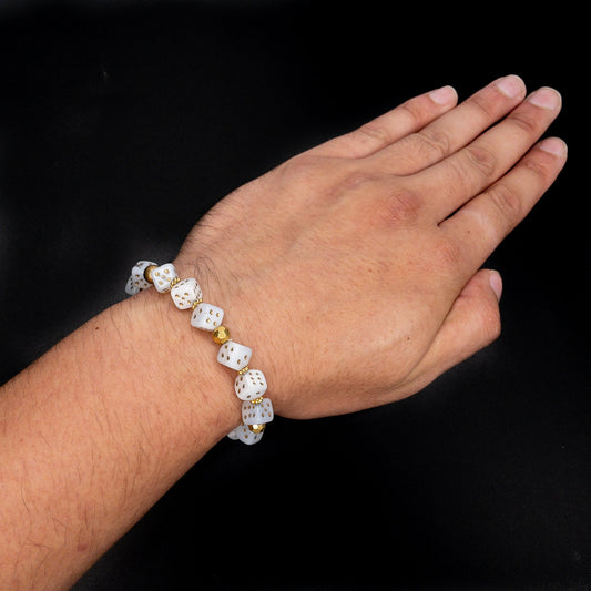 Dice (8mm) White Opaline with Gold Wash - 15 pc. Strand