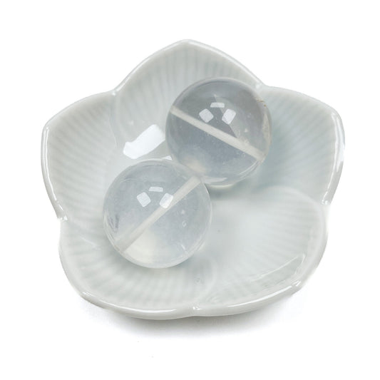 Crystal Quartz Etched Sakura Shower 14mm Round Bead - 1 pc. (P541)