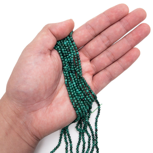 Malachite 3mm Smooth Round Bead - 8" Strand
