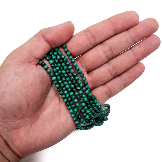 Malachite 4mm Smooth Round Bead - 8" Strand