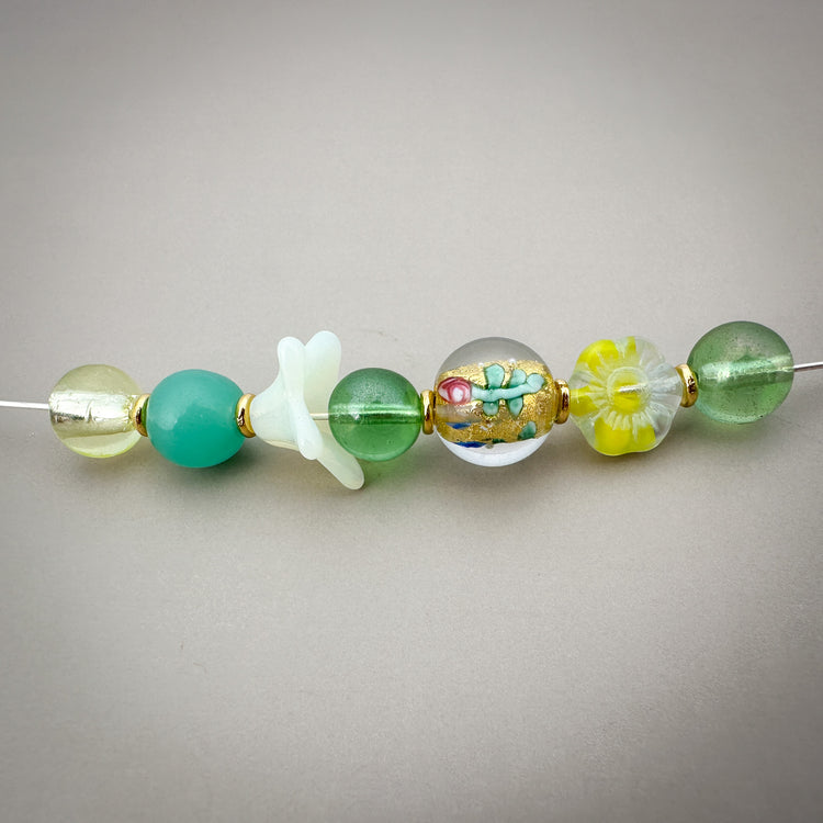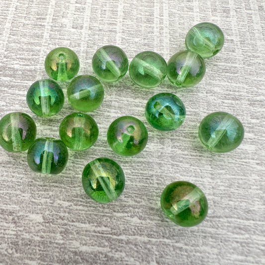 Vintage German 9mm Green Rainbow Glass Bead - 1 pc. (Z247)