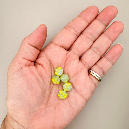 Vintage German 8mm Flower Yellow/Blue Glass Bead - 1 pc. (Z466)