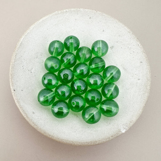 Vintage German 8mm Green Round Glass Bead - 1 pc. (Z10)