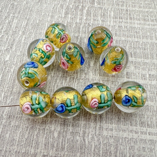 Vintage Handmade Czech Lampwork 10mm Clear with Rosettes Glass Bead - 1 pc. (Z908)