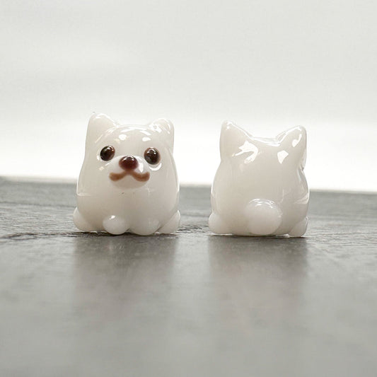 Chibi Handmade Glass Beads - Pomeranian Dog White (LB120)