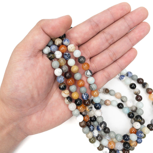 Mixed Gemstone 8mm Smooth Round Bead - 15.5" Full Strand
