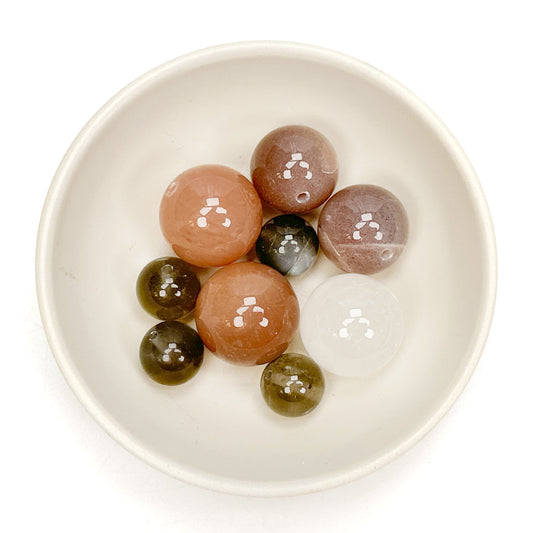 - Dreamtime Moonstone Large Round Bead Mix: 9 pieces