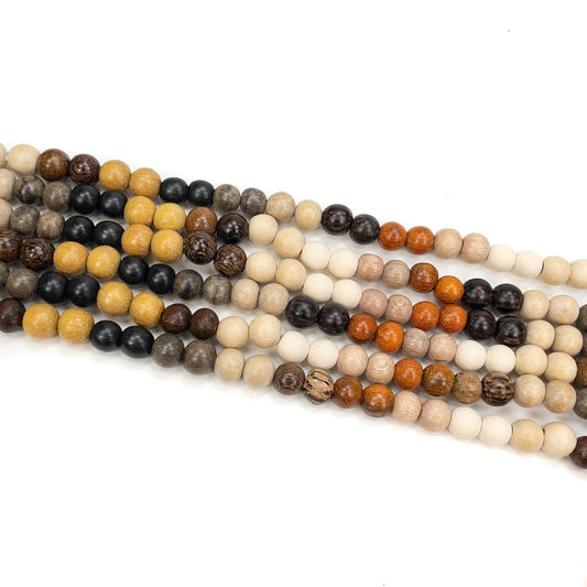 Natural Mixed Wood 8mm Round Bead - 15.5" Strand (GEM892)