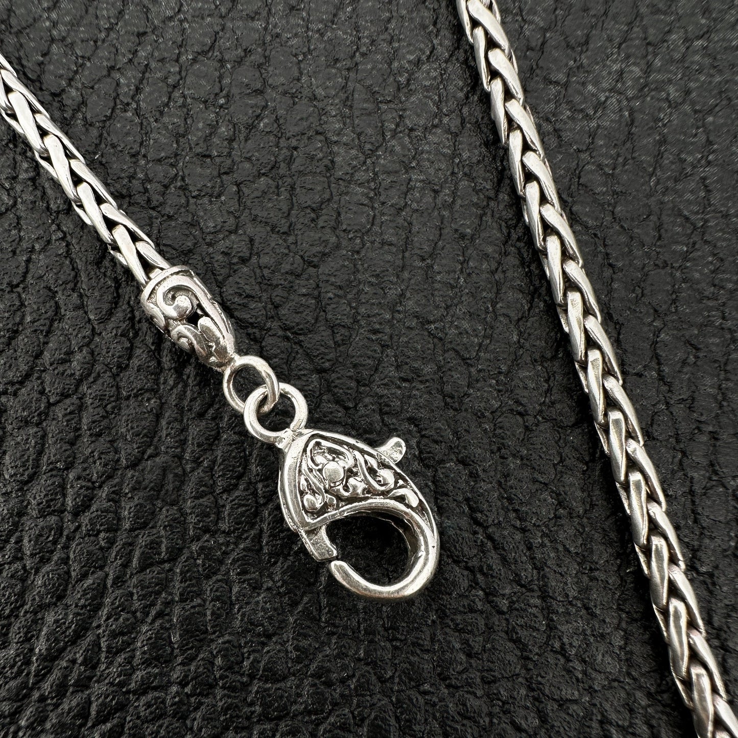 Enhance your style with our Braided Bali Silver Finished Chain Necklace, meticulously crafted for enduring quality. This exquisite piece features a braided design in high-quality Bali silver, complemented by a clasp adorned with intricate filigree detailing. Elevate any ensemble with its timeless beauty and artisan craftsmanship.