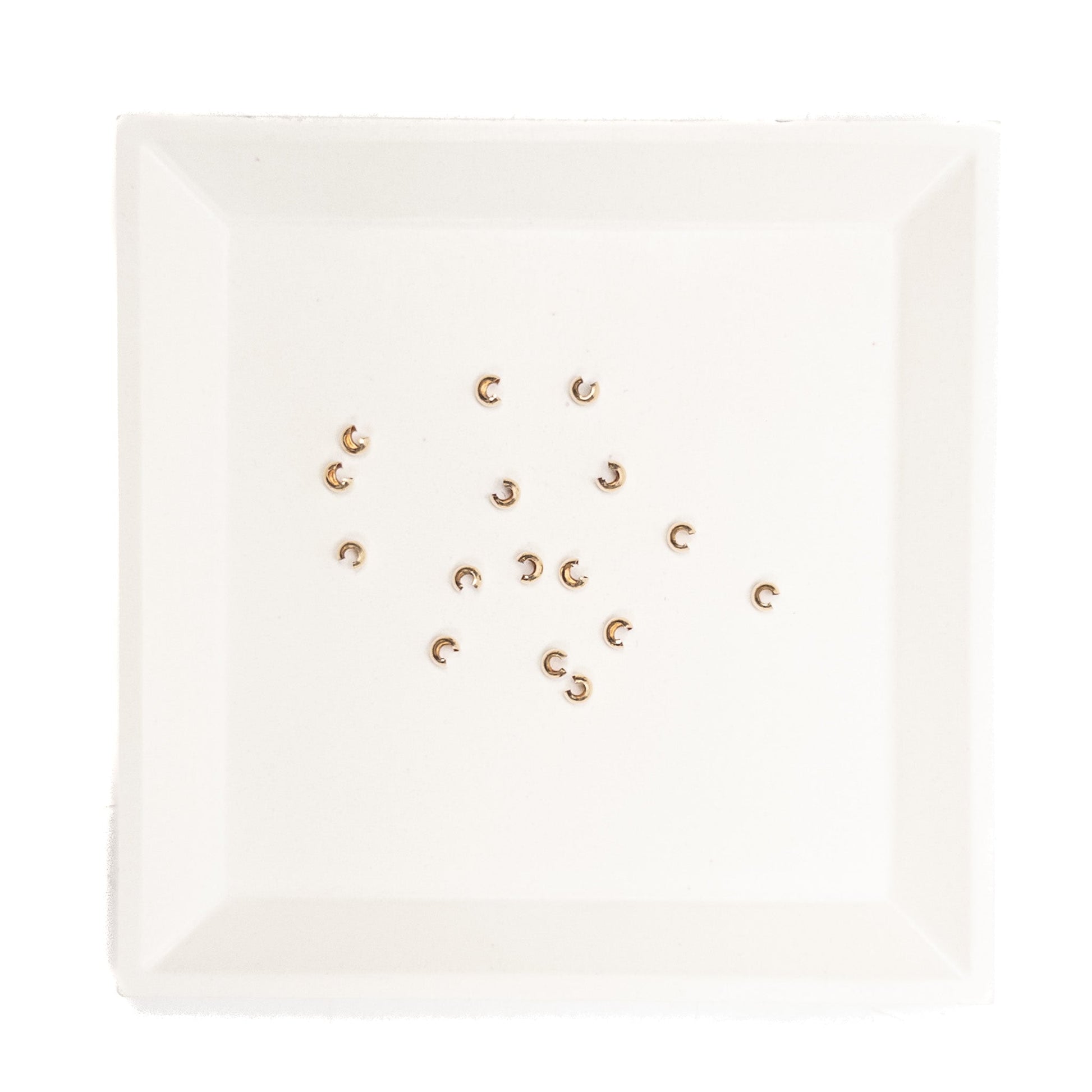 For form and function, cover your crimps (that have been folded in half) with these rounded open metal covers that have a groove in it! Your folded over crimps will nestle in the groove and hide away from sight, and not snag your hair or your clothing.