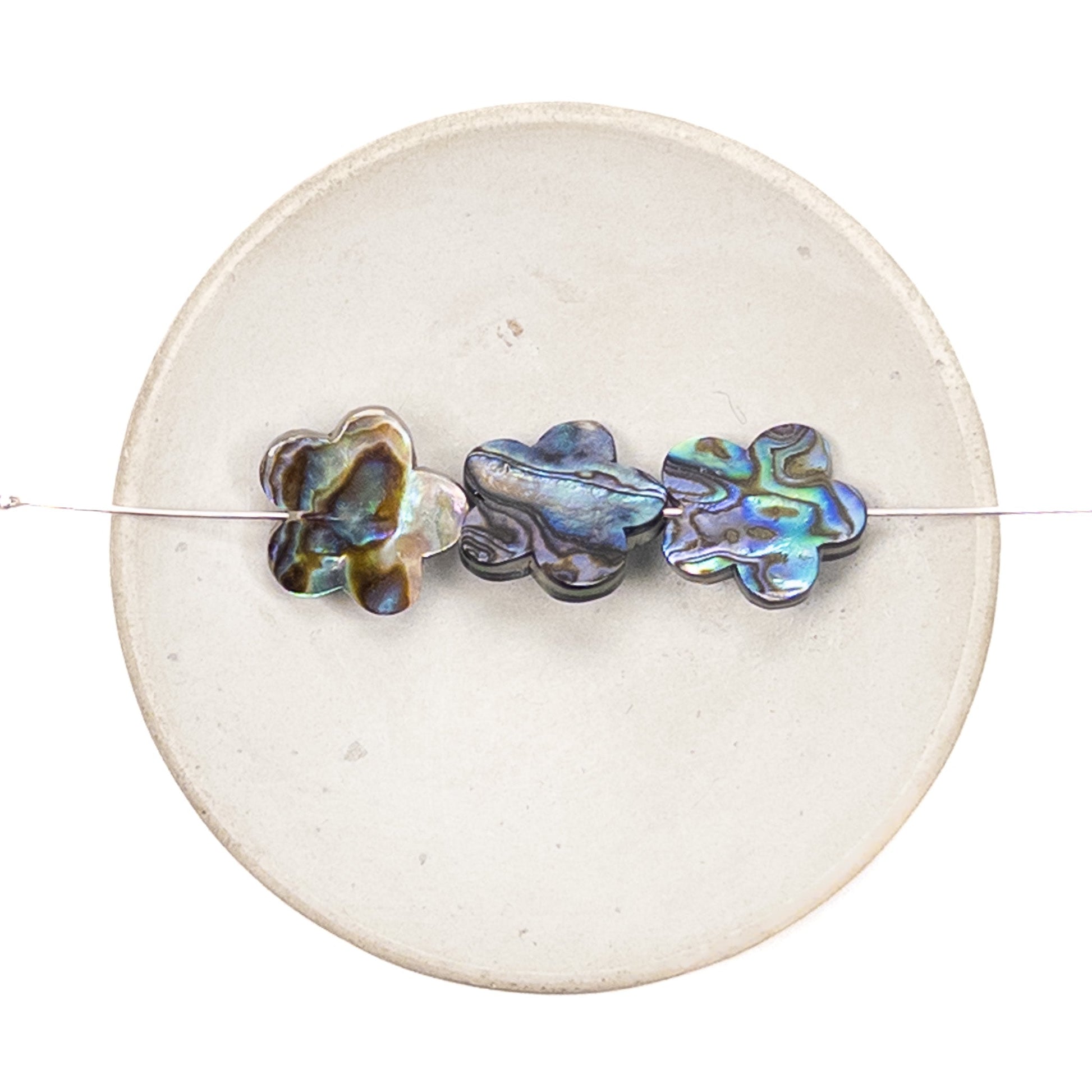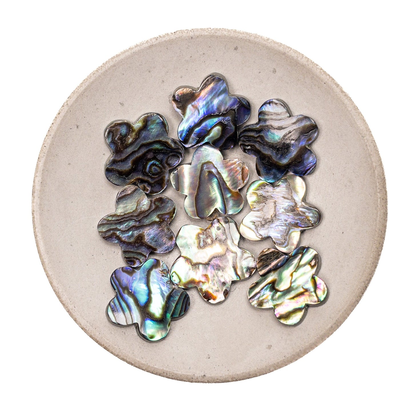 - 14mm Abalone (Paua) shell 5-petal flat flower bead