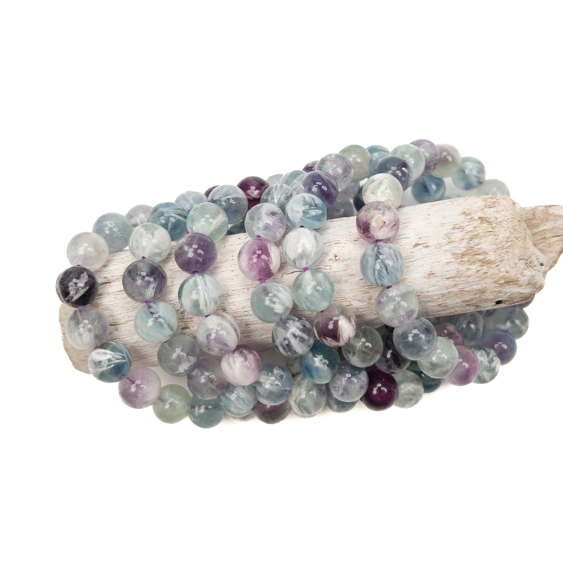 - Angel Feather Fluorite round bead stretchy bracelet