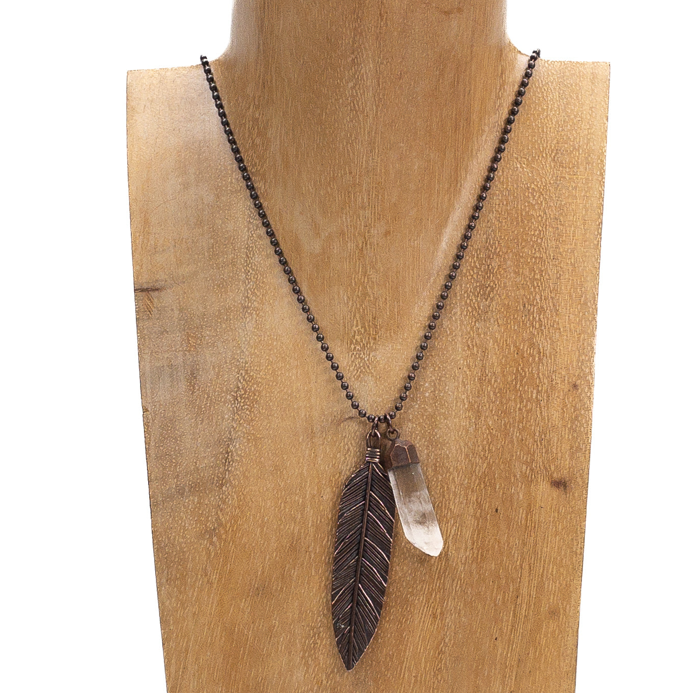 Antique Copper Free Spirit Feather Necklace (3 Charm Options)