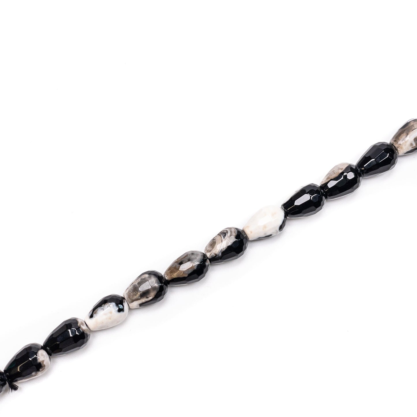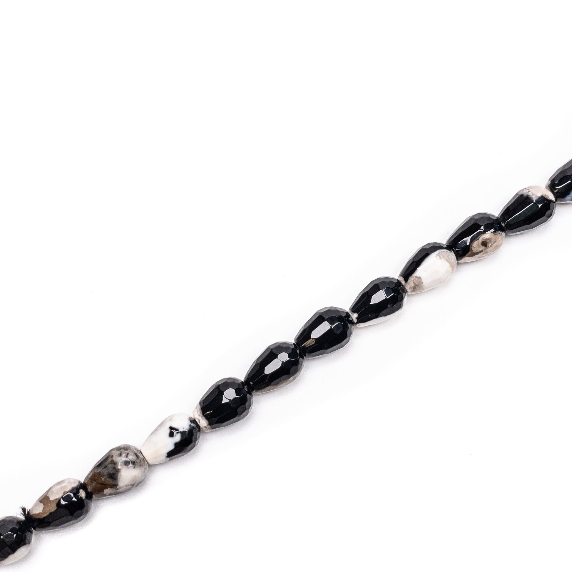 Black Agate 8x12mm Faceted Long-Drill Drop Bead - 7.5" Strand (GEM42)