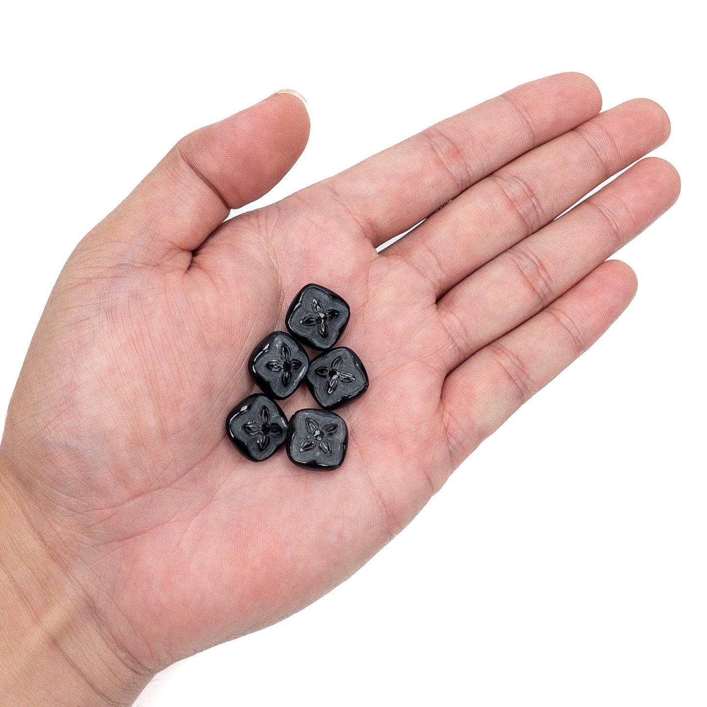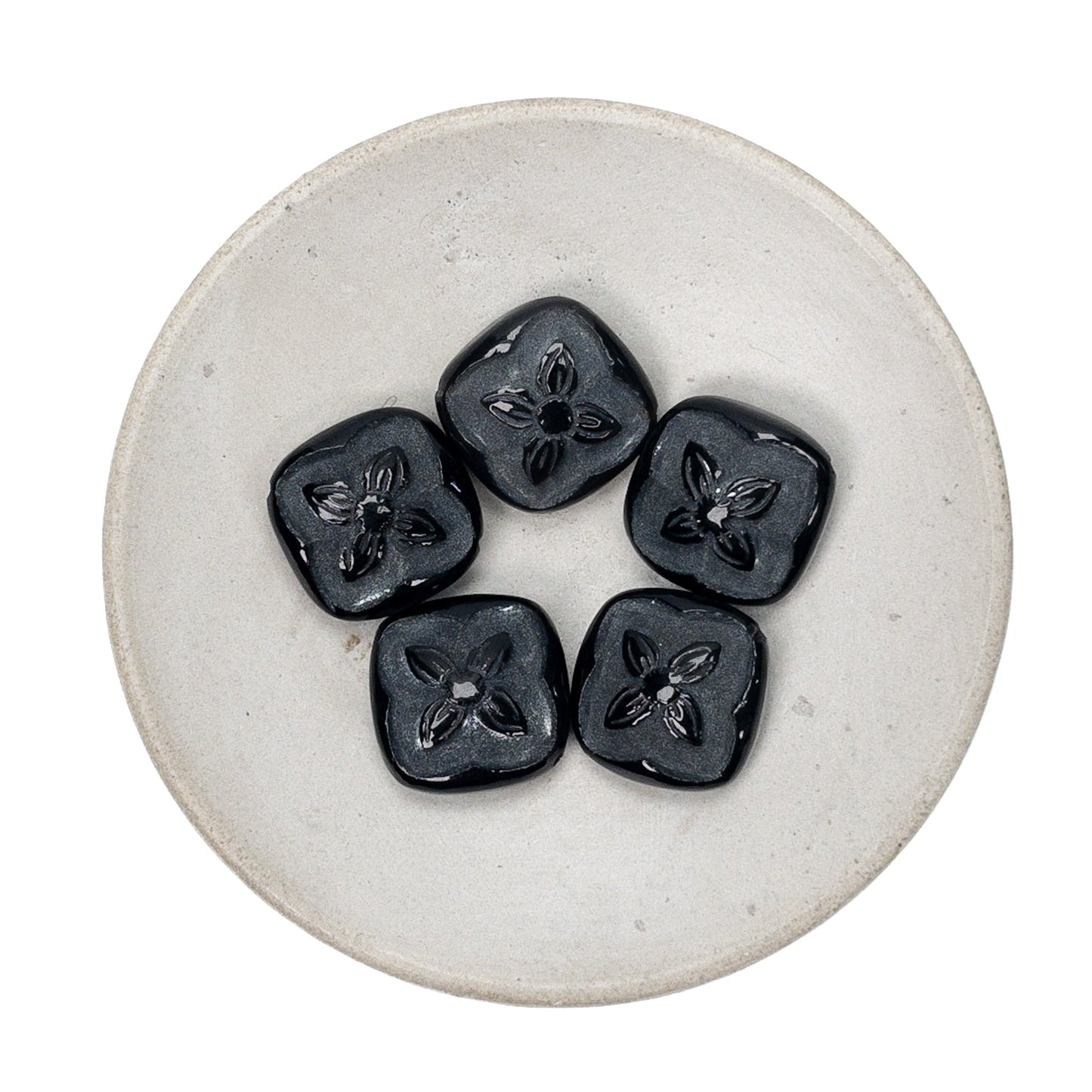 Black Onyx 16mm Flower Carved Square Bead - 1 pc. (P2391)