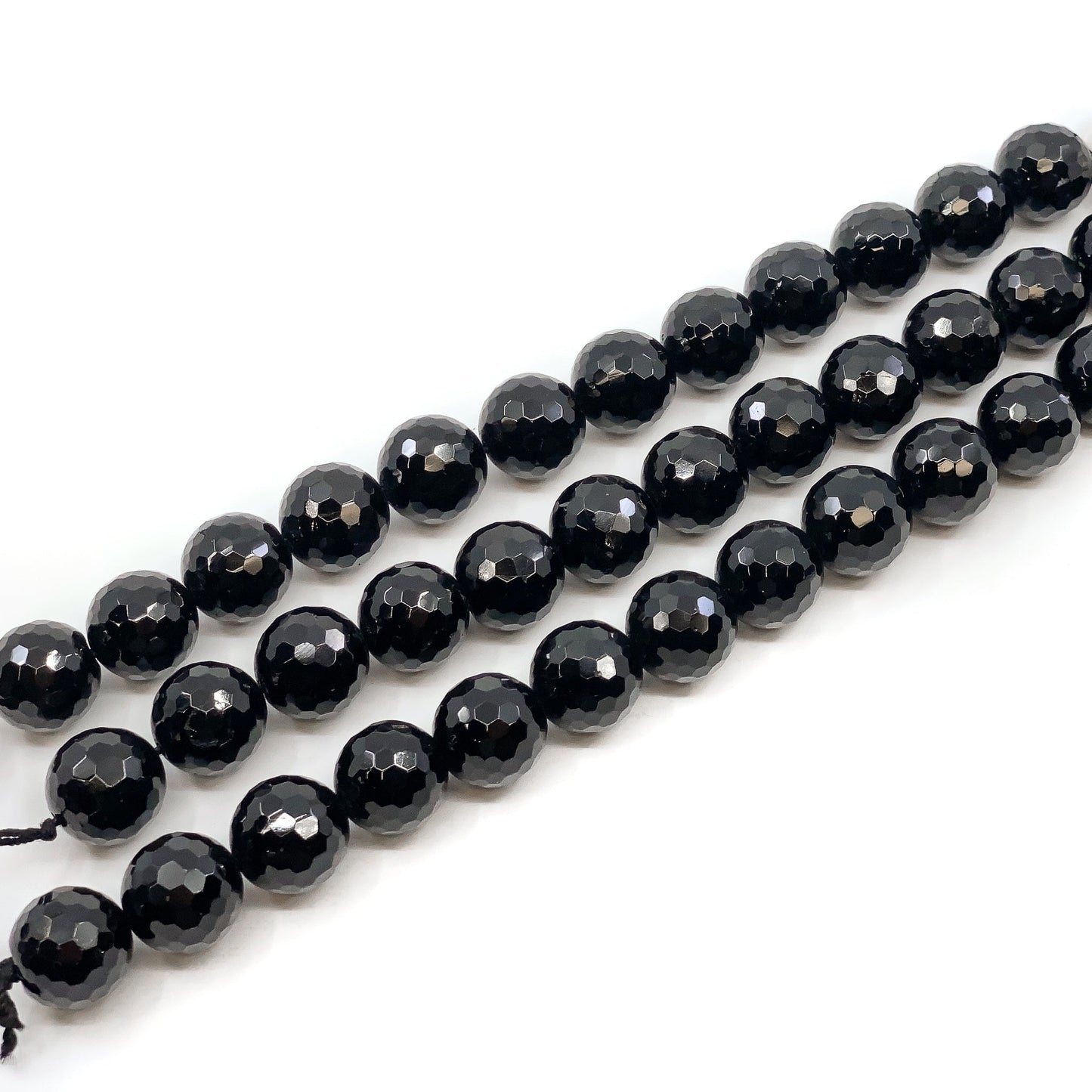 Black Tourmaline 14mm Faceted Round - 7.5" Strand