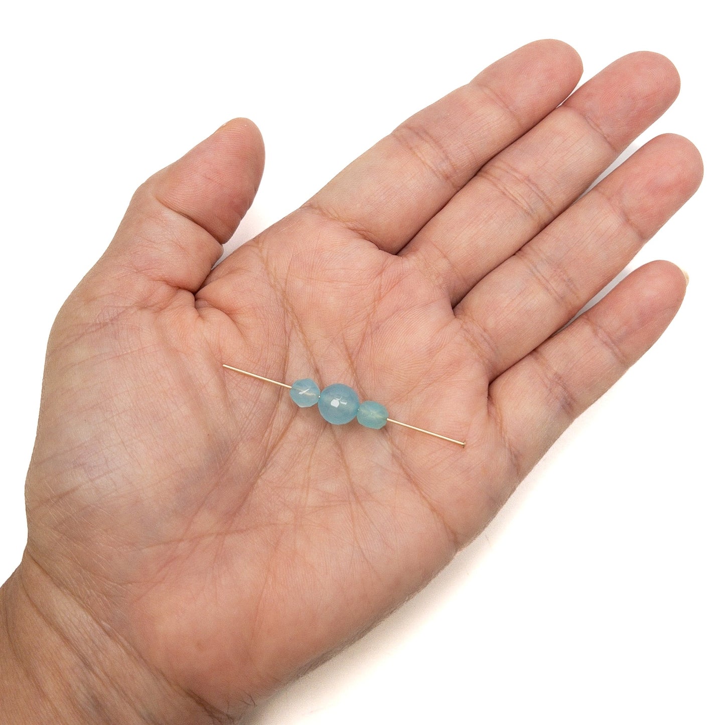 Blue Chalcedony Faceted Round Gemstone Bead Mix - 3 pcs.