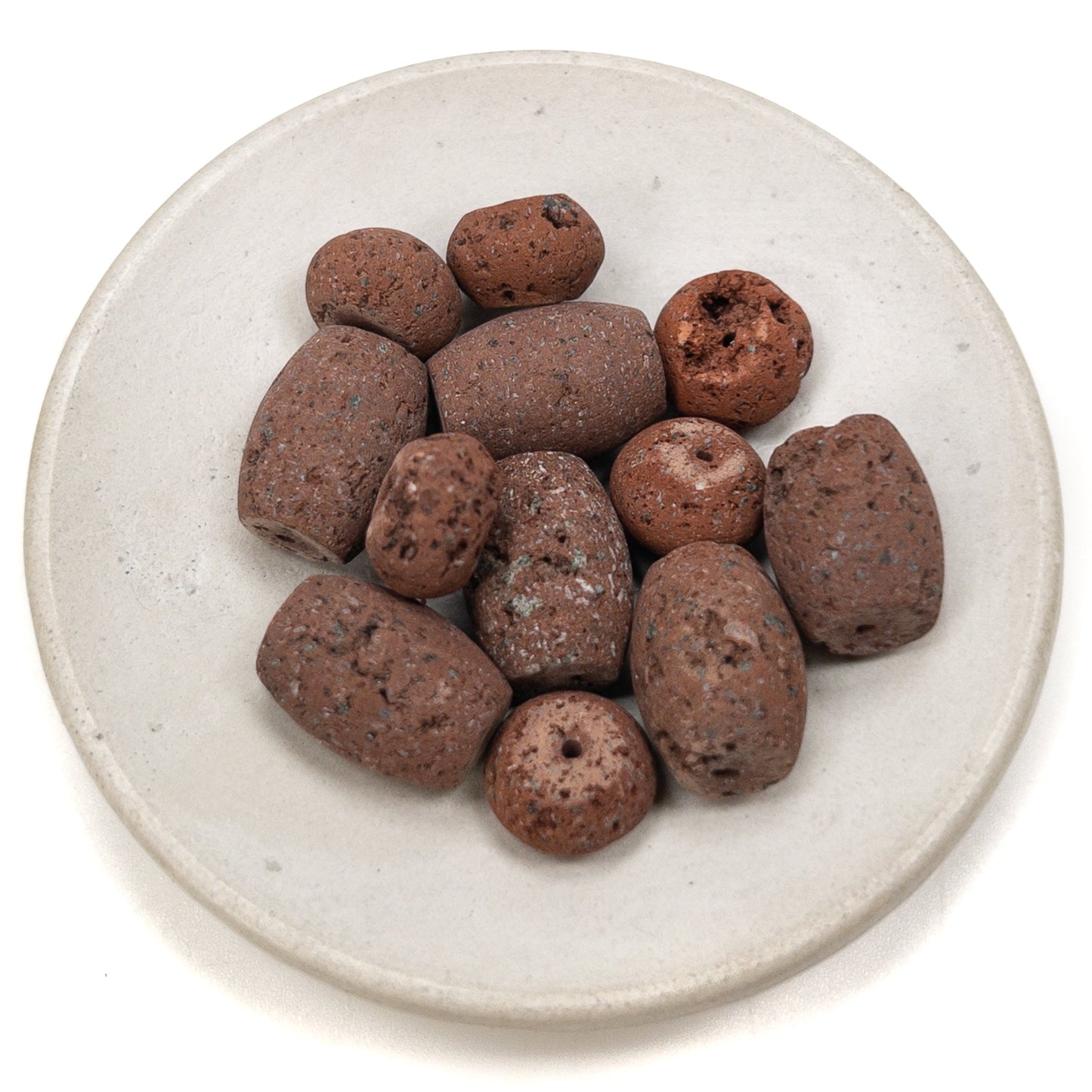 - These lava beads (aka basalt) are sourced from the multitude of volcanoes in Southeast Asia.