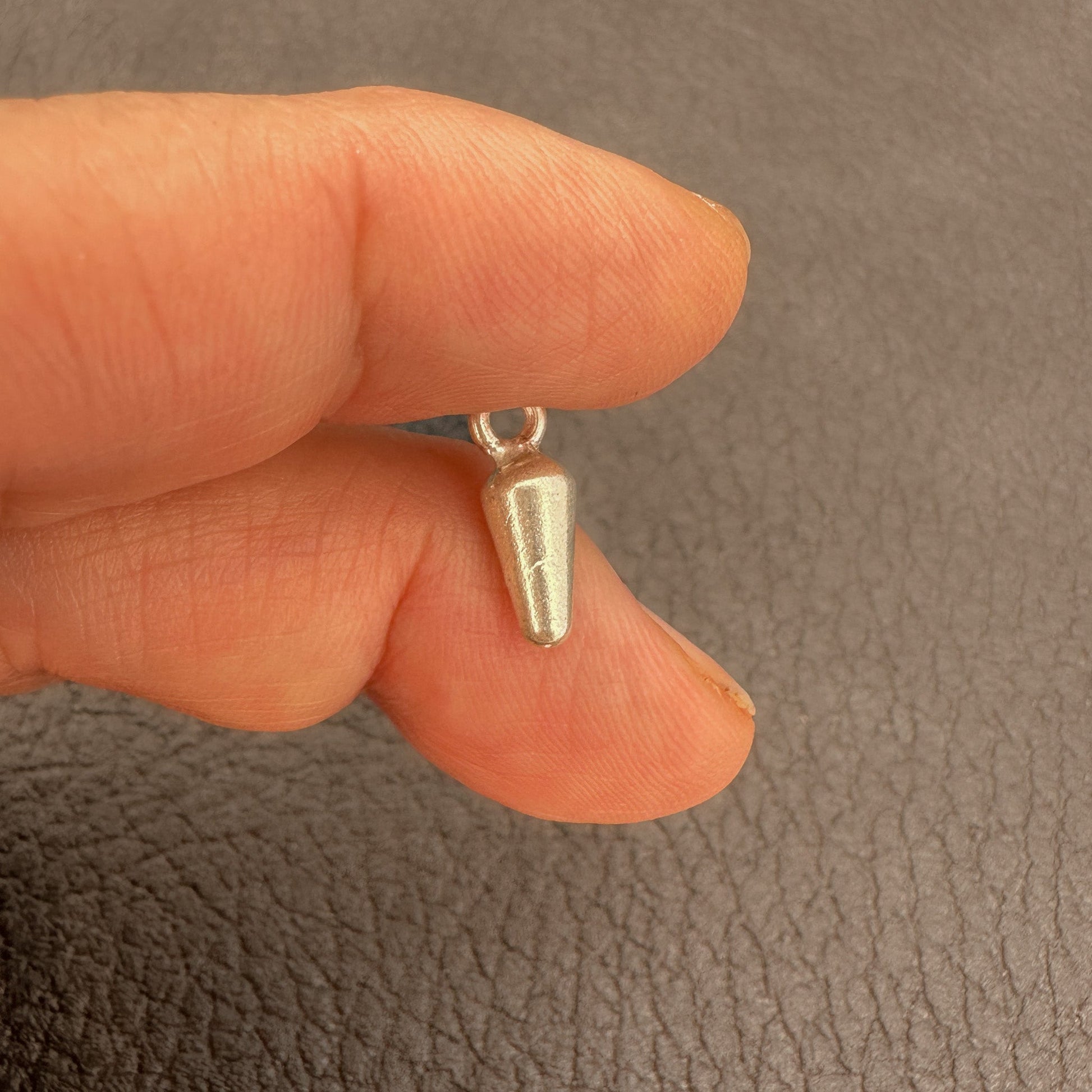 Add a whimsical touch to your jewelry designs with our Carrot-Shaped Heavyweight Sterling Silver Drop Charm. Crafted from high-quality silver, this charming drop features a substantial weight and is perfect for creating unique necklaces, bracelets, and earrings.