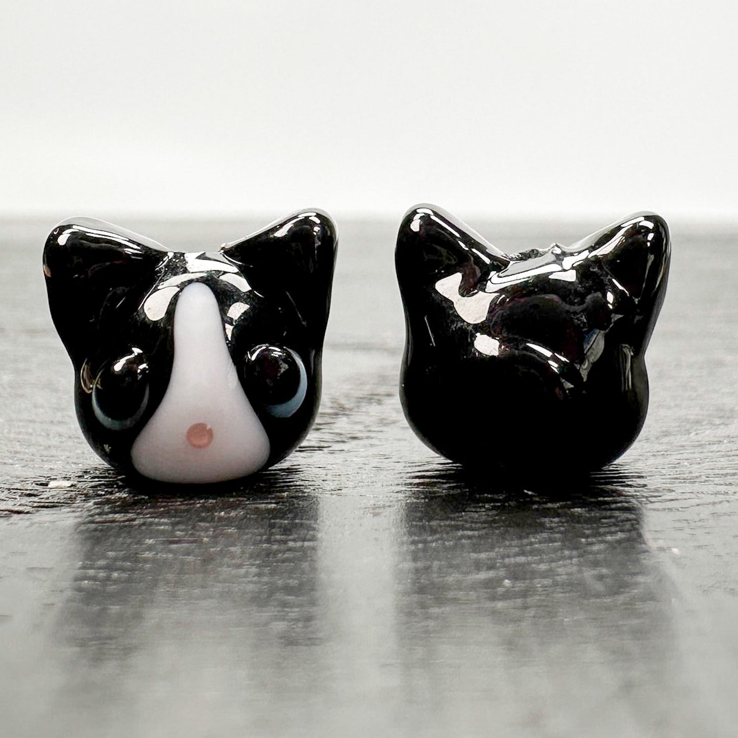 Chibi Handmade Glass Beads - Tuxedo Cat Light Blue Eyed (LB125)