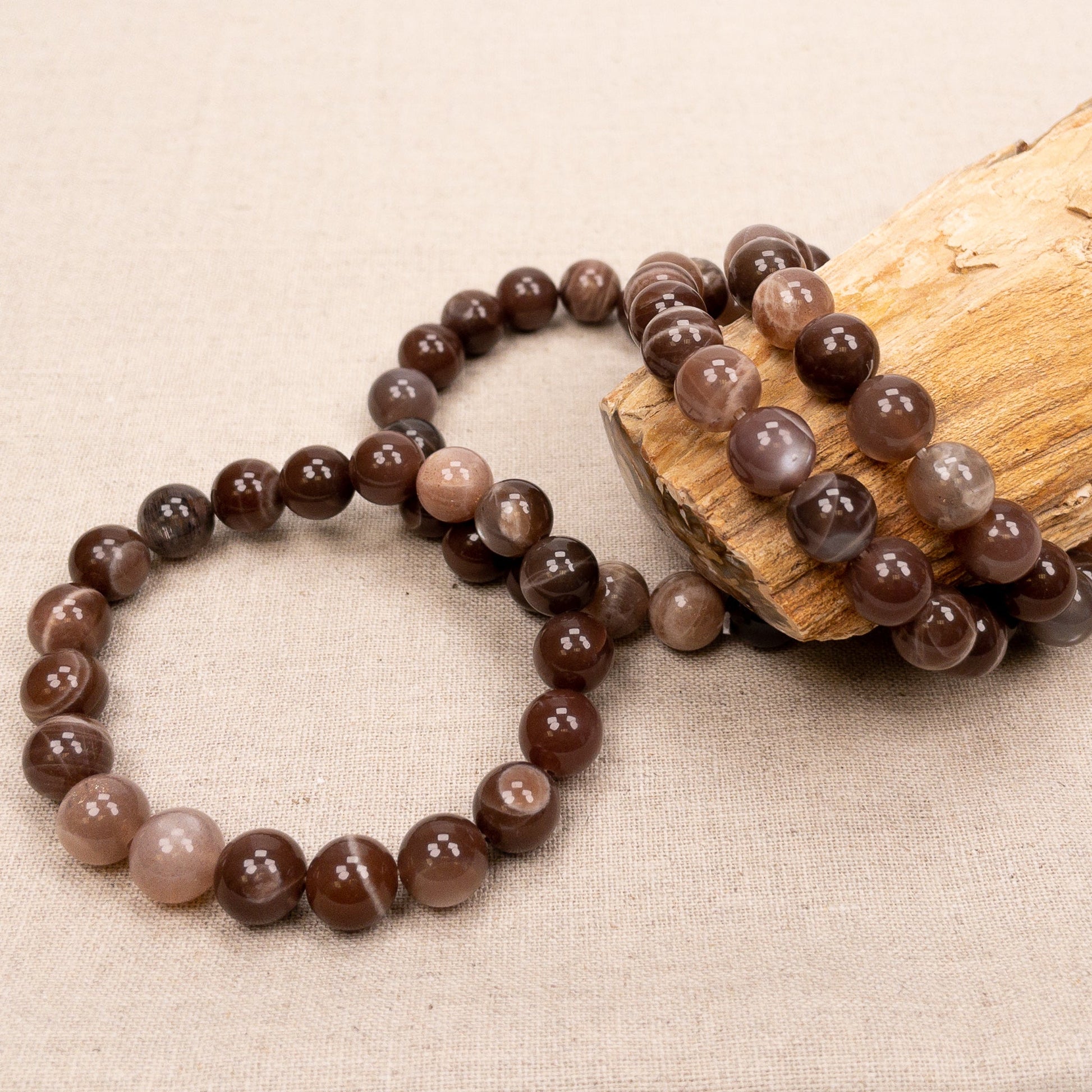 Chocolate Moonstone 10mm Round Bead Stretchy Bracelet (GEM1027)
