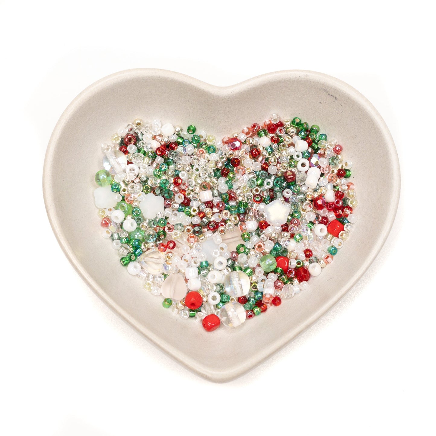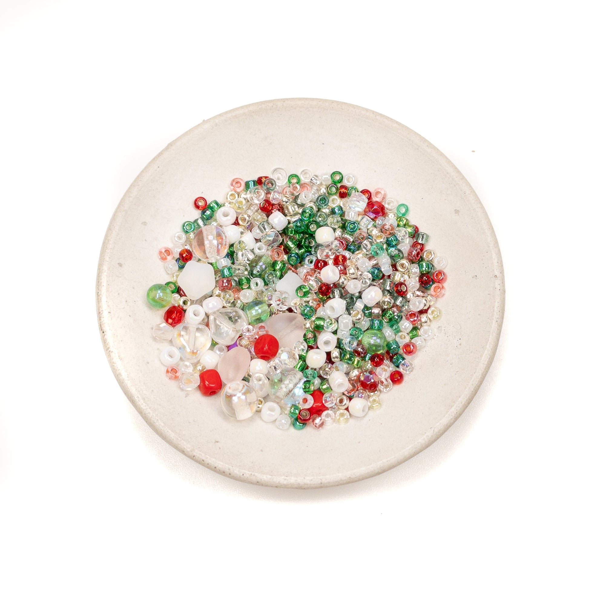 A joyful seed mix in Christmas colors featuring Japanese seed beads and Czech glass beads.