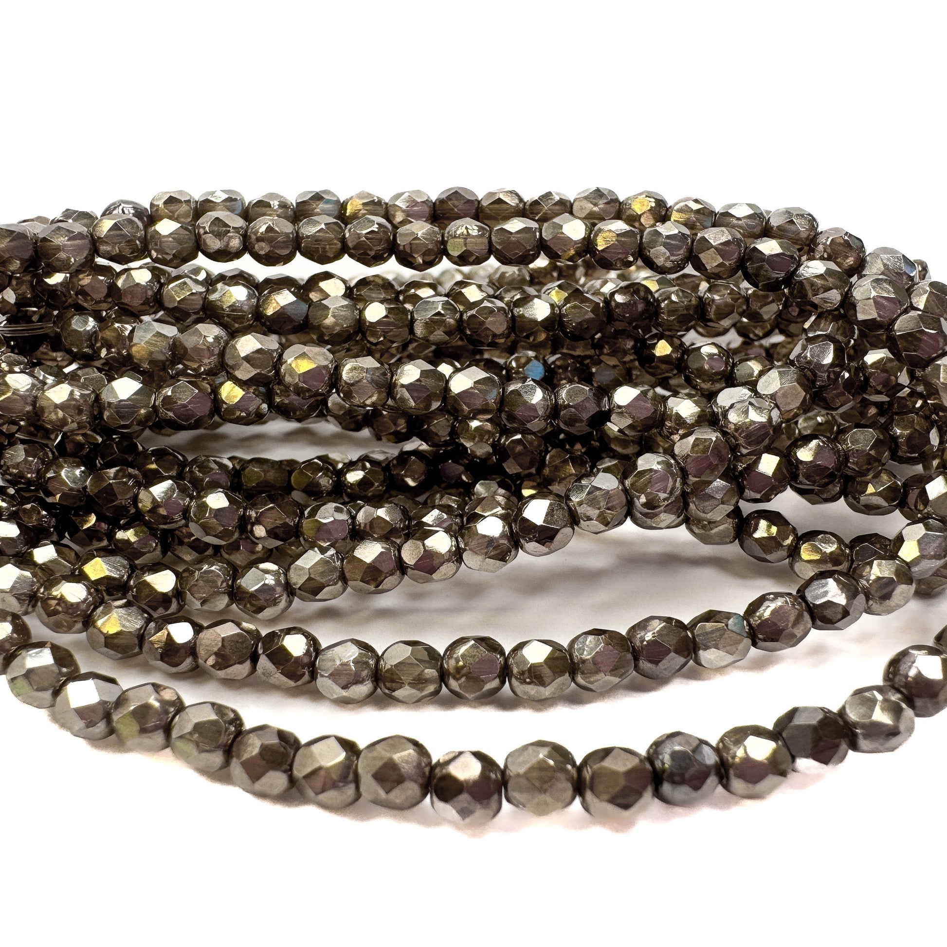 Dark Chrome Luster 4mm Faceted Glass Bead - 50 pcs.