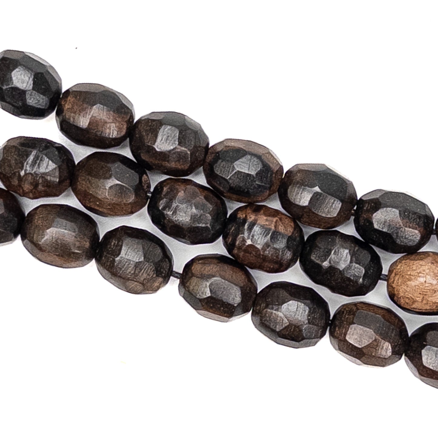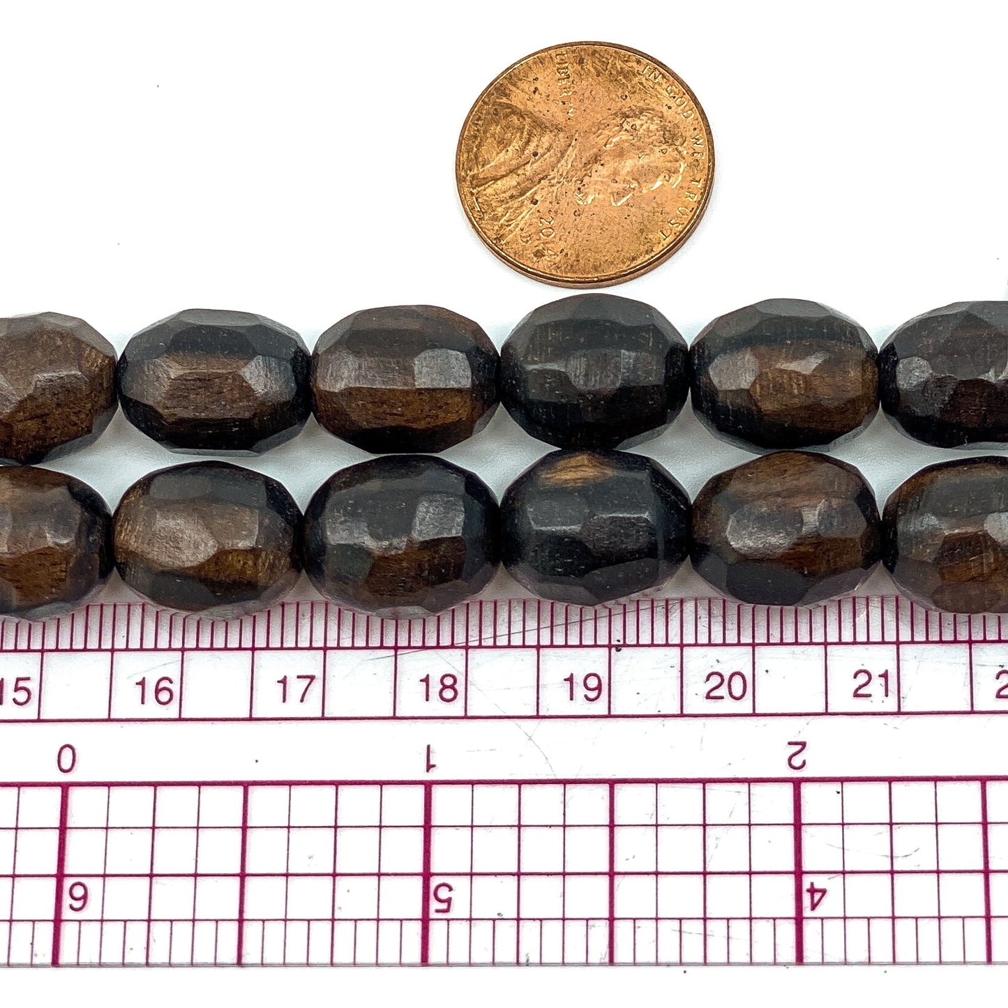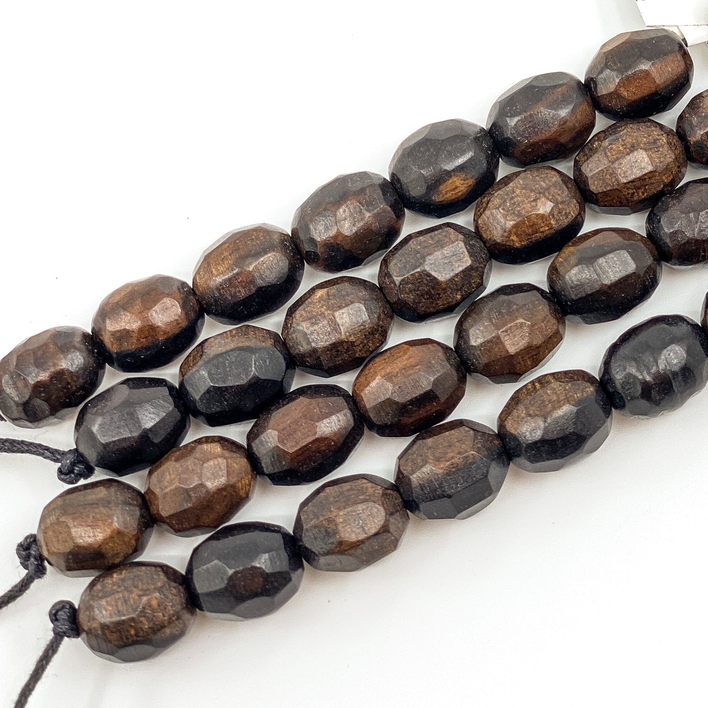 Faceted Tiger Ebony Wood Strand - 10x14mm Oval