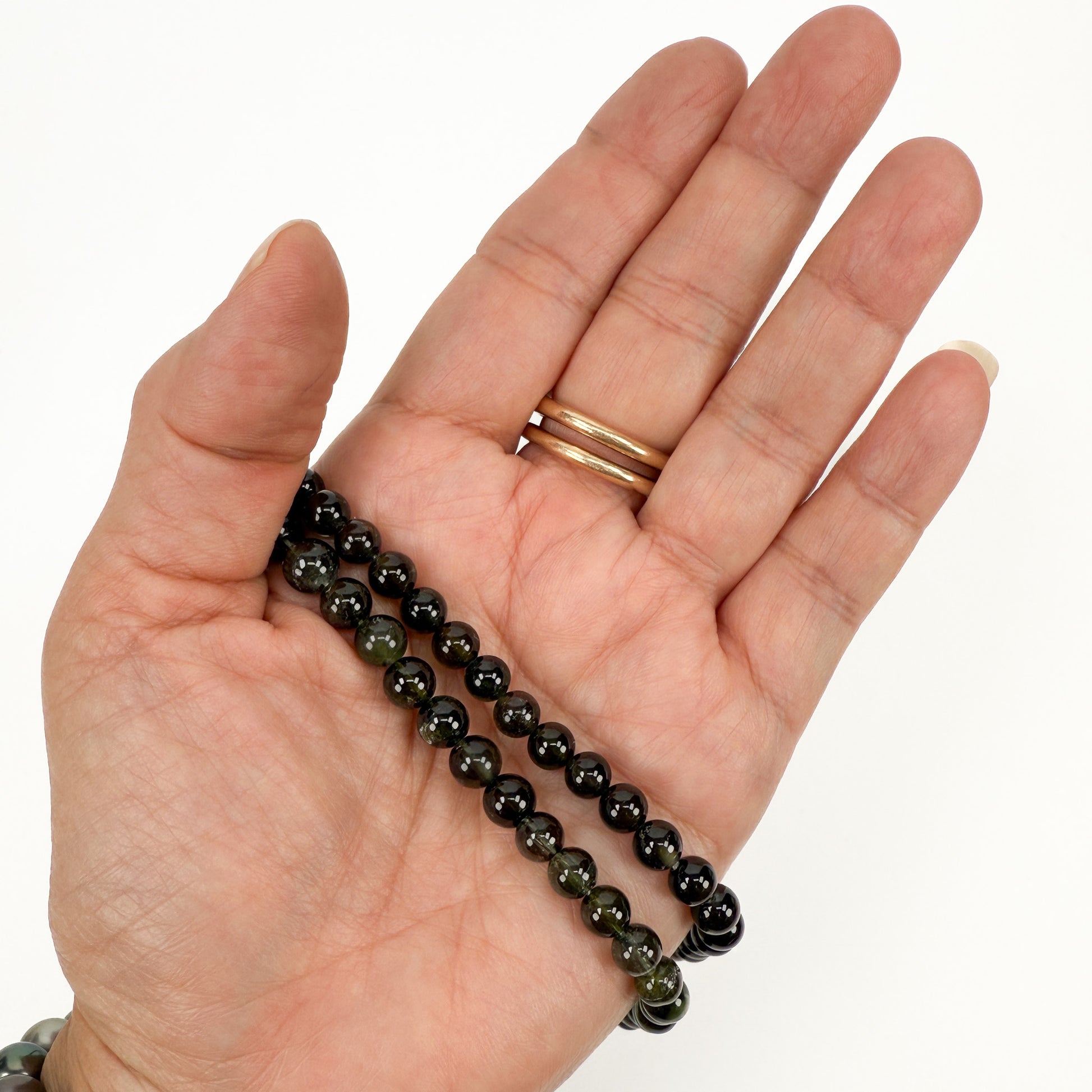 Green Tourmaline 6mm Smooth Round Bead - 8" Strand (GEM2334)