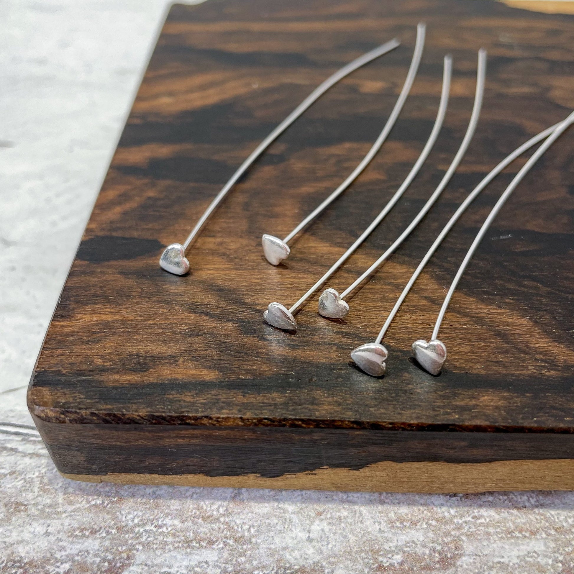 2.5" 22 Gauge Heart Headpin - Sterling Silver (4 pcs / S720)