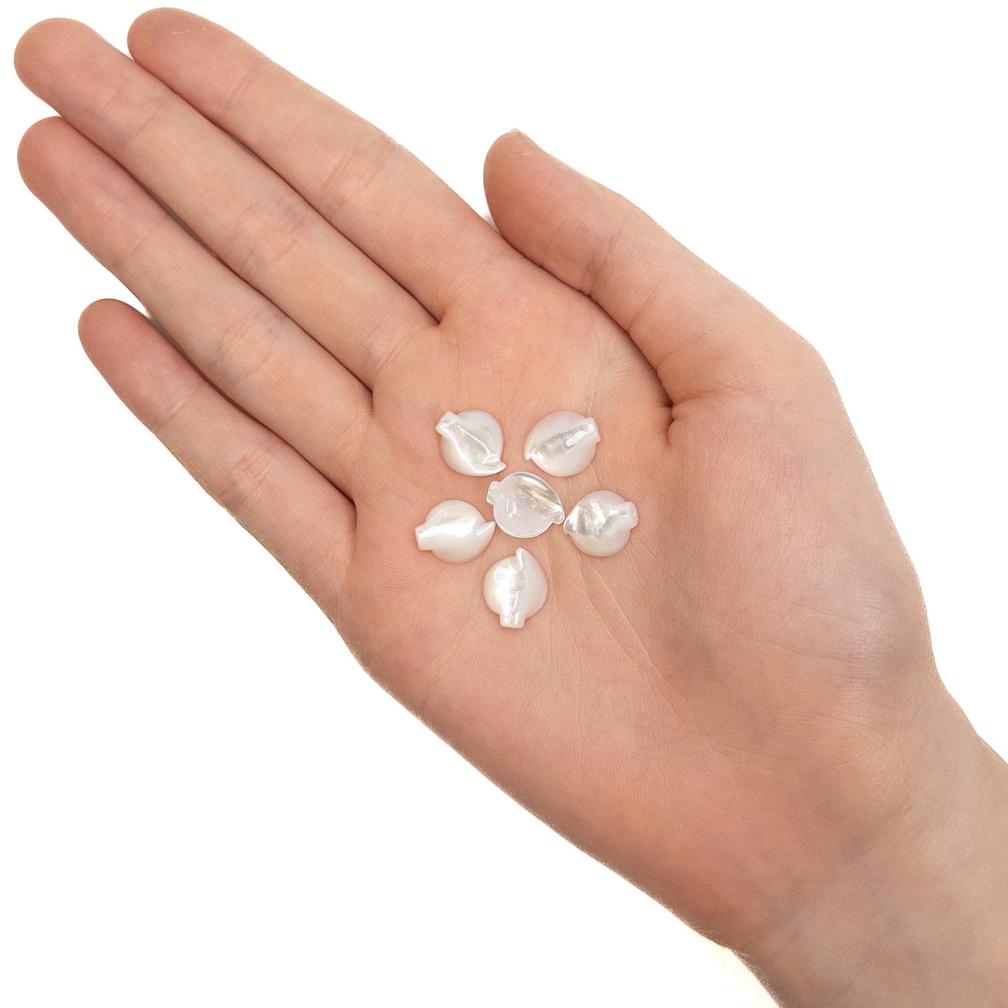 This 10 x 12.5mm mother-of-pearl lily bead is delicately handcarved so you can feature a gem nestled in the center.
