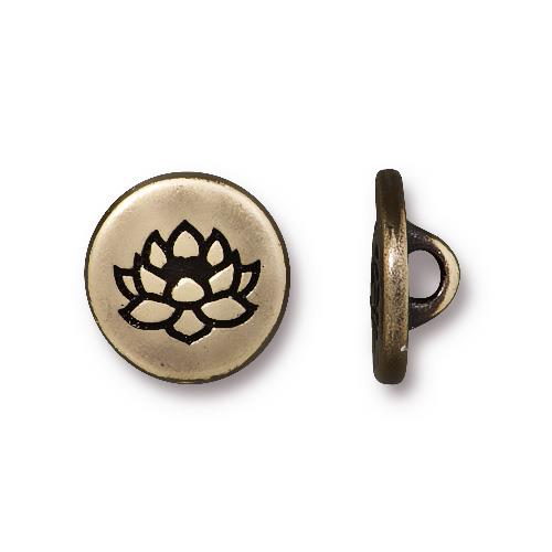 The beautiful lotus, symbolic in many cultures, can mean renewal, purity, or enlightenment. Buttons are the quintessential closure for wrap bracelets, and also make wonderful focals in necklaces and earrings. These buttons are great for use on clothing, too - they hold up well with normal washing.