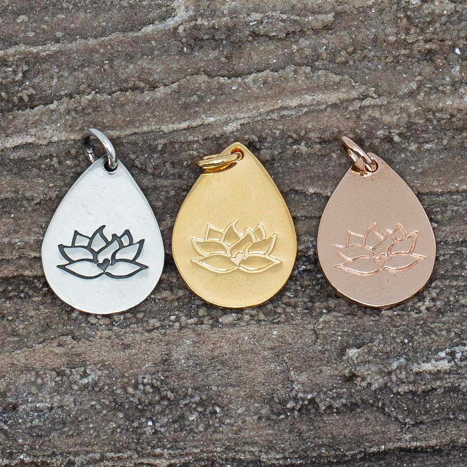 We love the idea behind the symbolism of the lotus- rising from the muddy waters, untouched and pure of heart, mind and soul! When you wear our charms, we send you continued messages that you are loved. These are like little hugs :)
