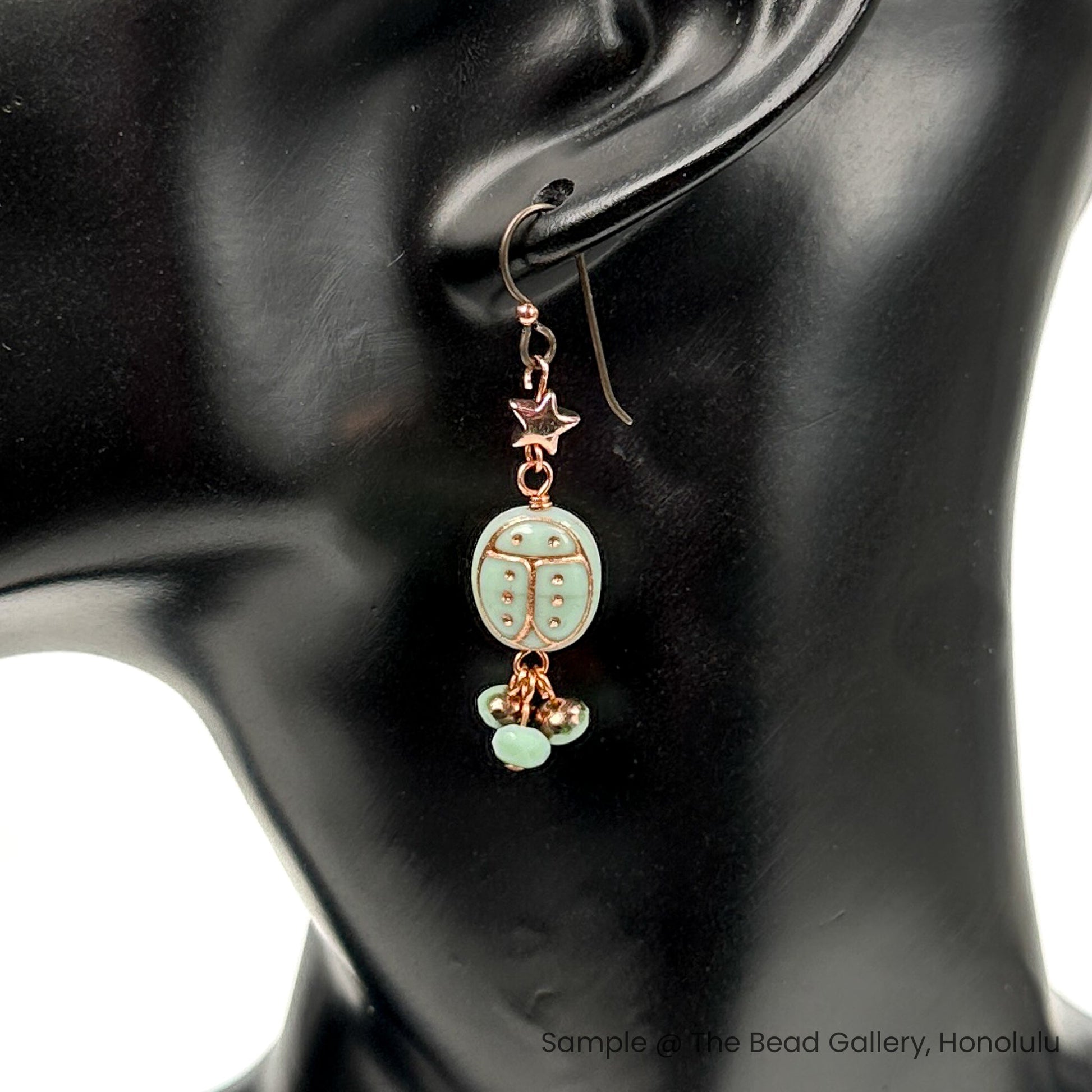 Minty Blue Green Ladybug Czech Glass Beads - 10 pcs.